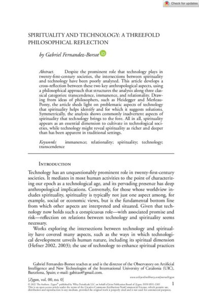 This is a Journal article in which I develop a cross-reflection between spirituality and technology.