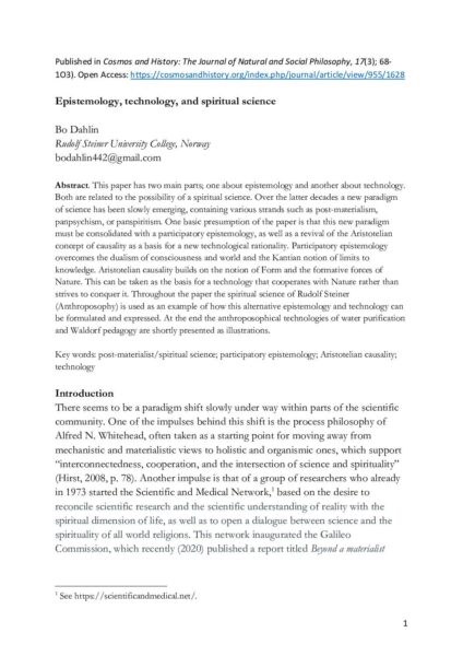 I have uploaded a paper recently published on science, technology and spirituality/anthroposophy, should anyone be interested. 🙂
