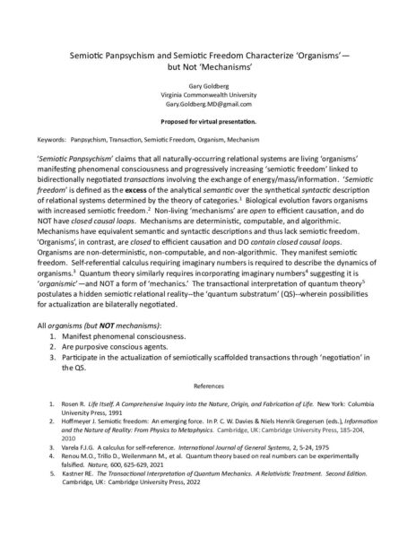 Semiotic Panpsychism abstract for presentation to the 2023 meeting of the Semiotic Society of America