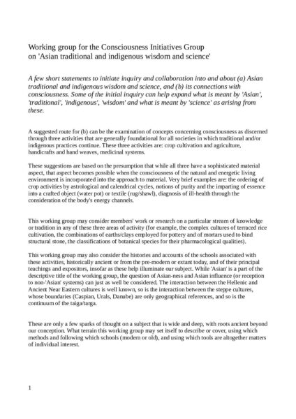The outline of the working group for the CIG on 'Asian traditional and indigenous wisdom and science' is available.